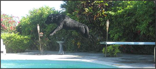 Bahamas Kennel Club 25th International All Breed Dog Show and Obedience Trials. On Saturday, March 18, 2006 (under AKC licensed judges) Dylan: Won Best of Breed and Sporting Group 1 1st place in Novice Obedience (1st Bahamian CD leg) 2nd place in Novice Obedience (2nd Bahamian CD leg) 2nd place in Rally (1st Bahamian Rally leg) On Sunday, March 19, 2006 (under AKC licensed judges) Dylan: Won Best of Breed and Sporting Group 1 for his Bahamian Championship 2nd place in Novice Obedience for his 3rd leg and Bahamian CD Qualified for a his 2nd leg in Rally 3rd place in Rally for his 3rd leg and Bahamian RN ![]() .....and then we relax by the pool! ![]() Not many dogs can dive off of a diving board in such style!!! We give him a 10!!! ![]() Click onto link below for the